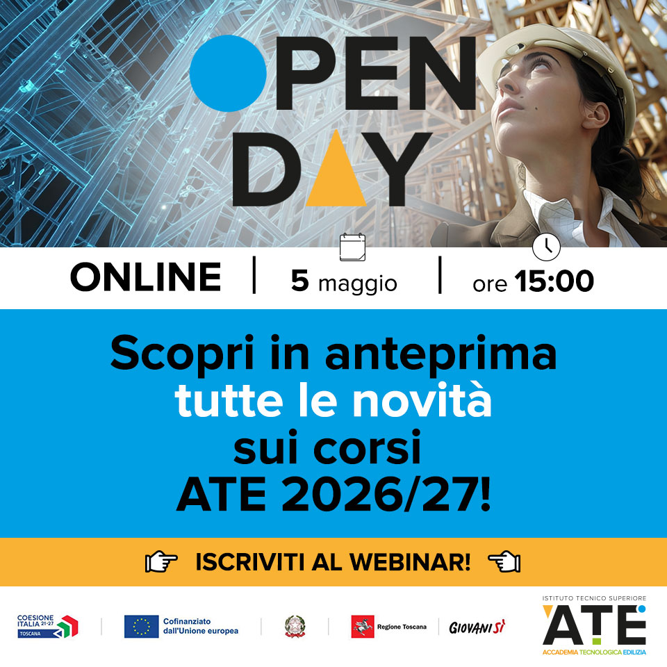 Finalmente in Toscana un ITS dedicato all’edilizia 4.0: ATE, Accademia Tecnologica Edilizia, è l’istituto superiore post-diploma in grado di formare figure professionali qualificate – tecnici, tecnologi, professionisti del sistema casa – e garantire uno sbocco professionale di qualità nel settore già dopo il primo anno di corso, grazie a contratti di apprendistato di alta formazione.